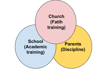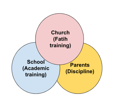 Home: Parents provide proper discipline, ensuring harmonious growth in faith, academics, and behavior.